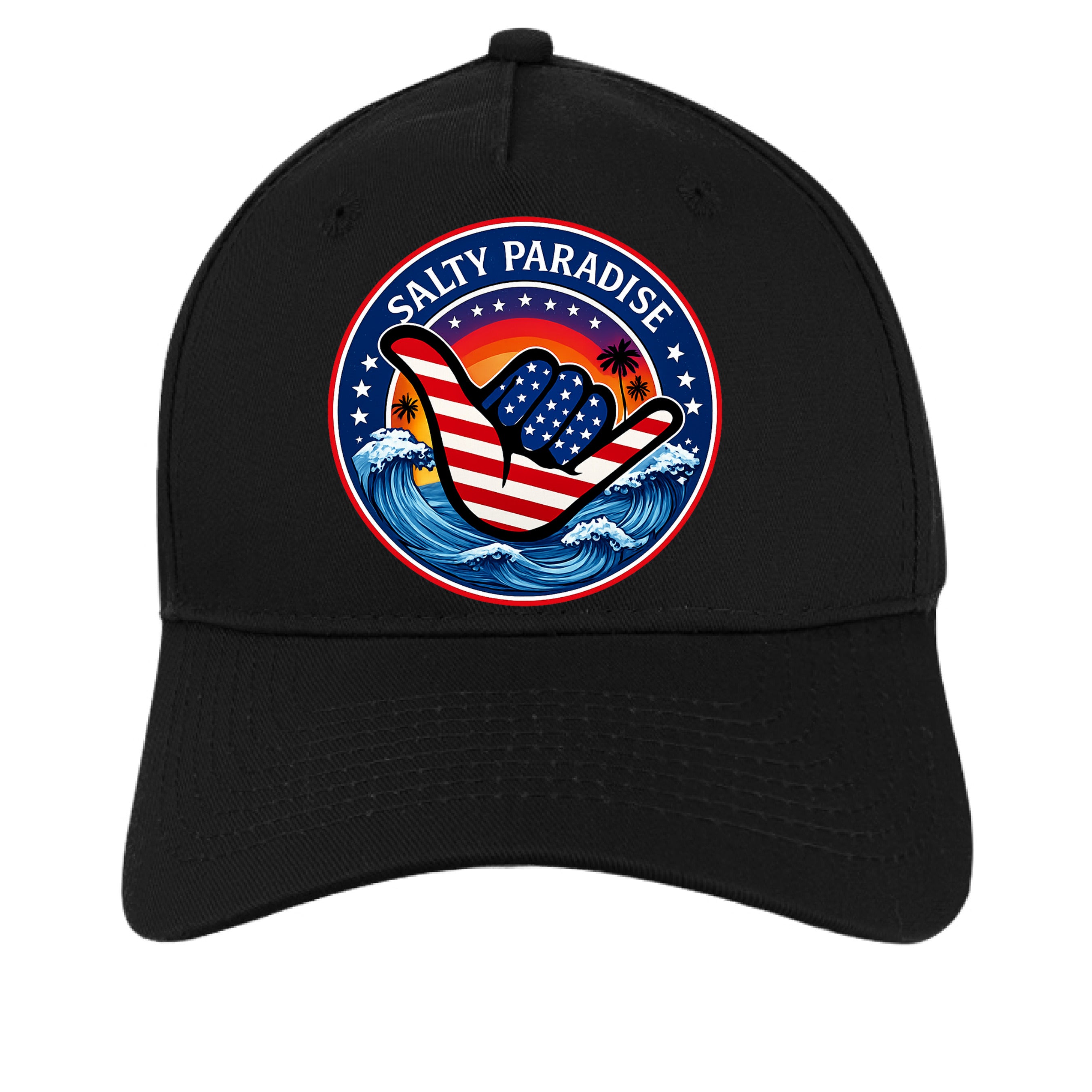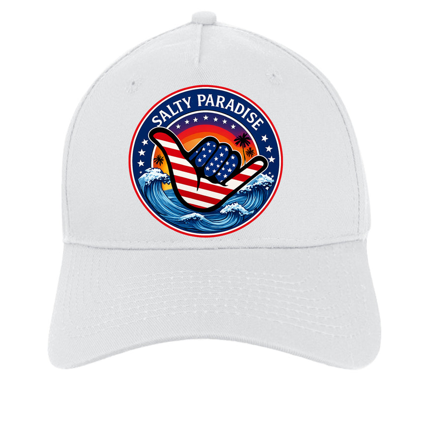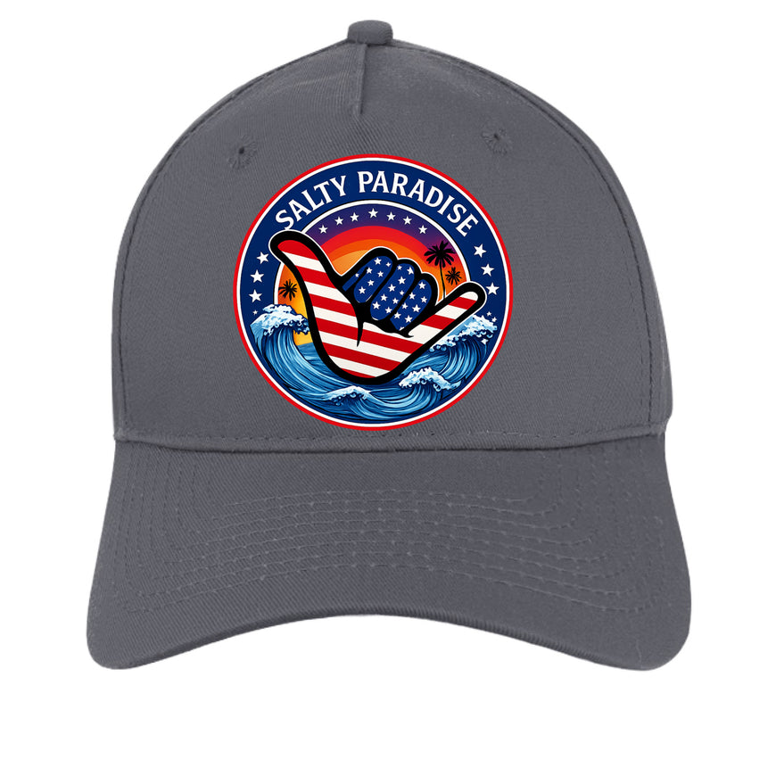 Salty Paradise American Flag Shaka Cap Port & Company ® Five-Panel Twill Cap. CP86